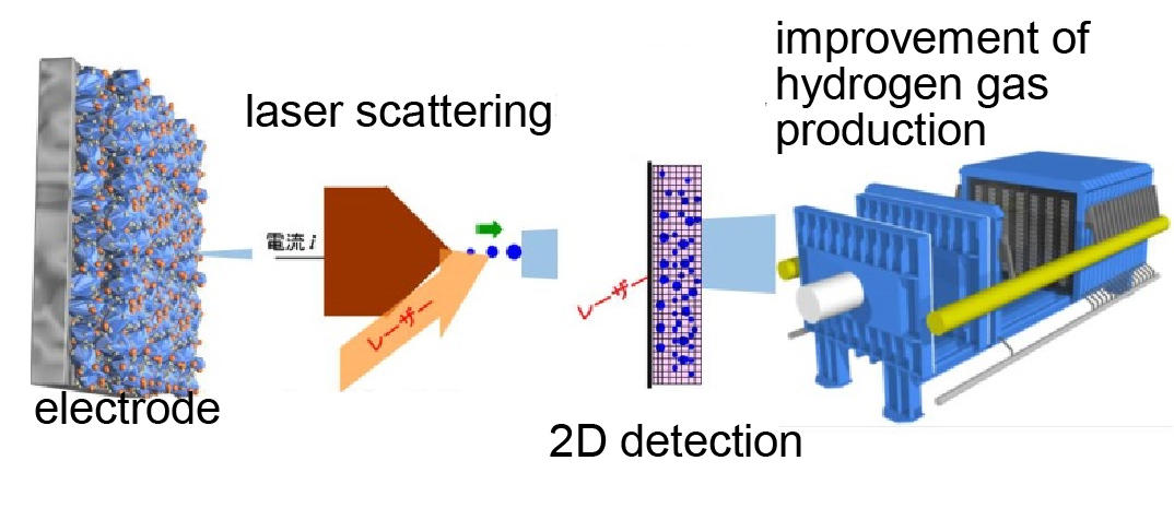 By clarifying the formation process of hydrogen bubbles during the water electrolysis by laser scattering technique we can design better electrodes with optimized morphology.