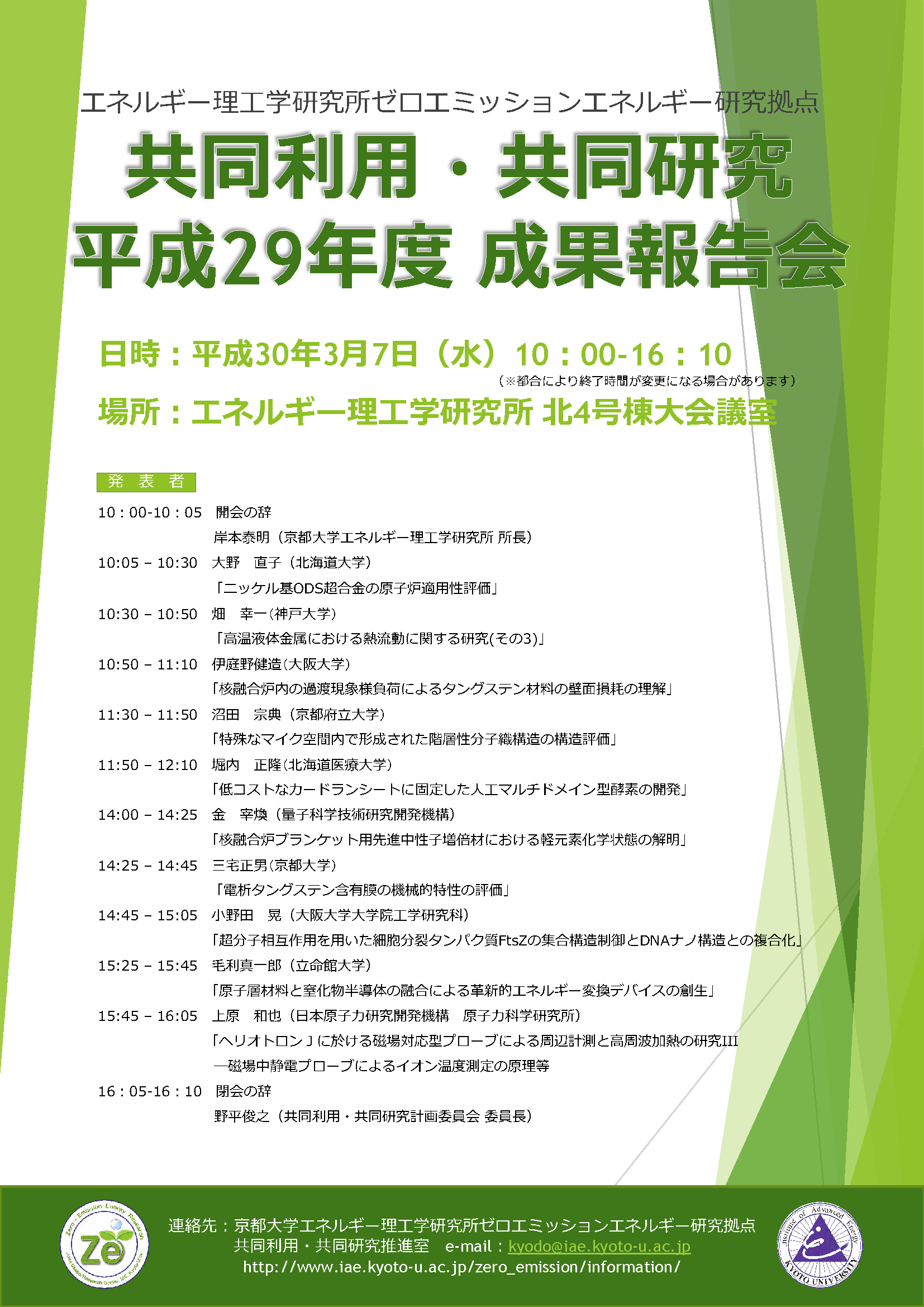 Notification of FY 2018 Research Outcome Meeting of Joint Usage/Research for Zero Emission Energy
