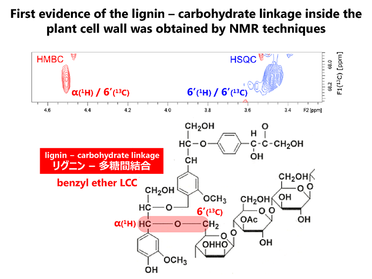 First evidence of the lignin - carbohydrate linkage inside the plant cell wall - Contribution to the progress of biomass utilization toward sustainable society